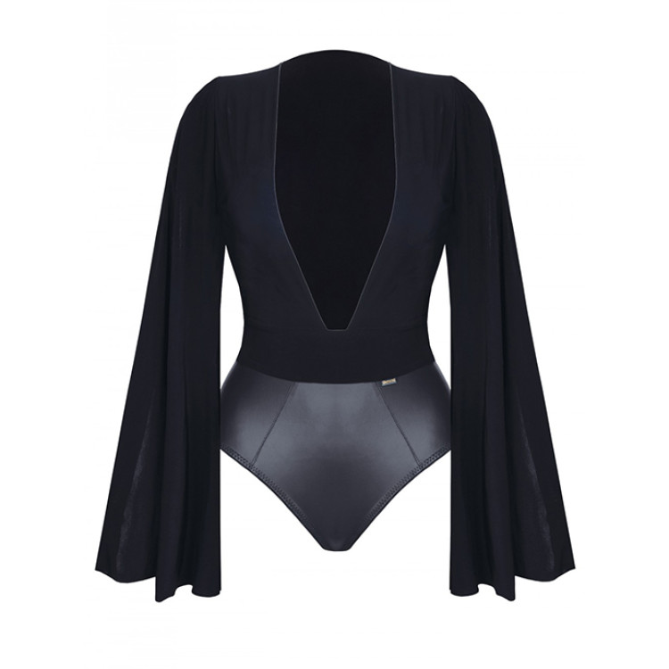 Oppdag eleganse og frekkhet i denne nydelige Alexis bodyen fra Demoniq! Denne unike bodyen har lange ermer, åpne skuldre og en dyp utrigning.