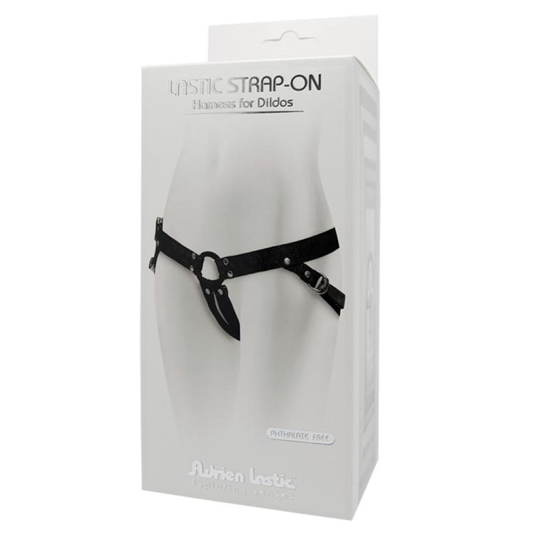 Eksklusiv, håndlaget strap-on harness av sort denim på utsiden og mykt tøy på innsiden. Selve selen er justerbar og passer de fleste. To av stroppene går mellom lårene, opp til siden av hoftene og av den grunn er denne selen svært komfortabel under bruk!