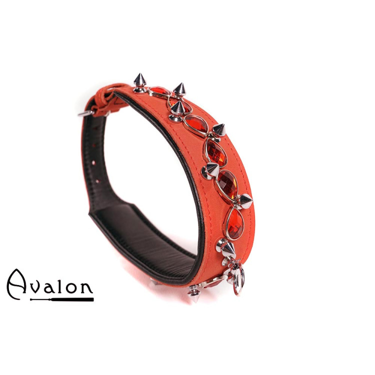 Collar med nagler, røde stener og liten roterbar O-ring.