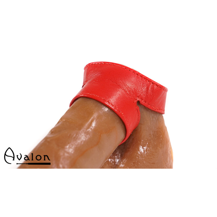 Dobbel penis og pungring i lær med trykknapper for enkel justering.