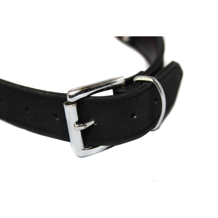 Gag med rød 40 mm silikonball fra Avalon. Laget i mykt og polstret lær på innsiden og matt lær på utsiden. Justeres lett med spenner.