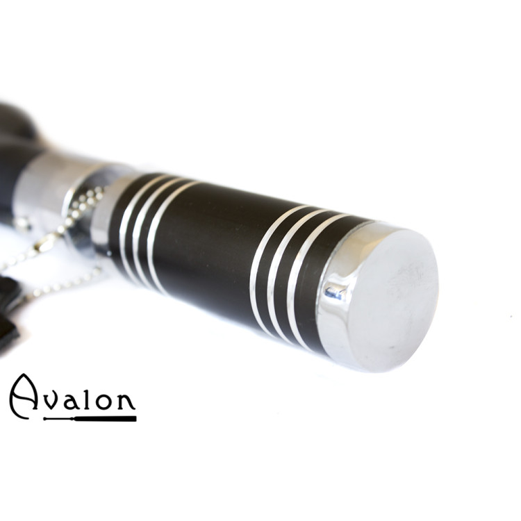 Avalon - SOLOMON - Paddle med håndform og brunt metallhåndtak med striper - Sort