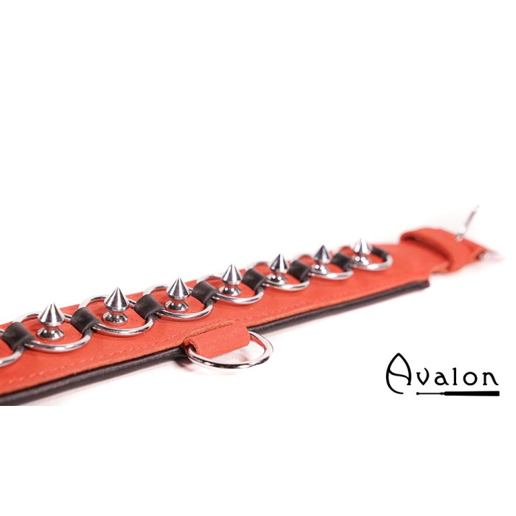 Collar med spisse nagler og ringer og har en D-ring til feste av lenke.