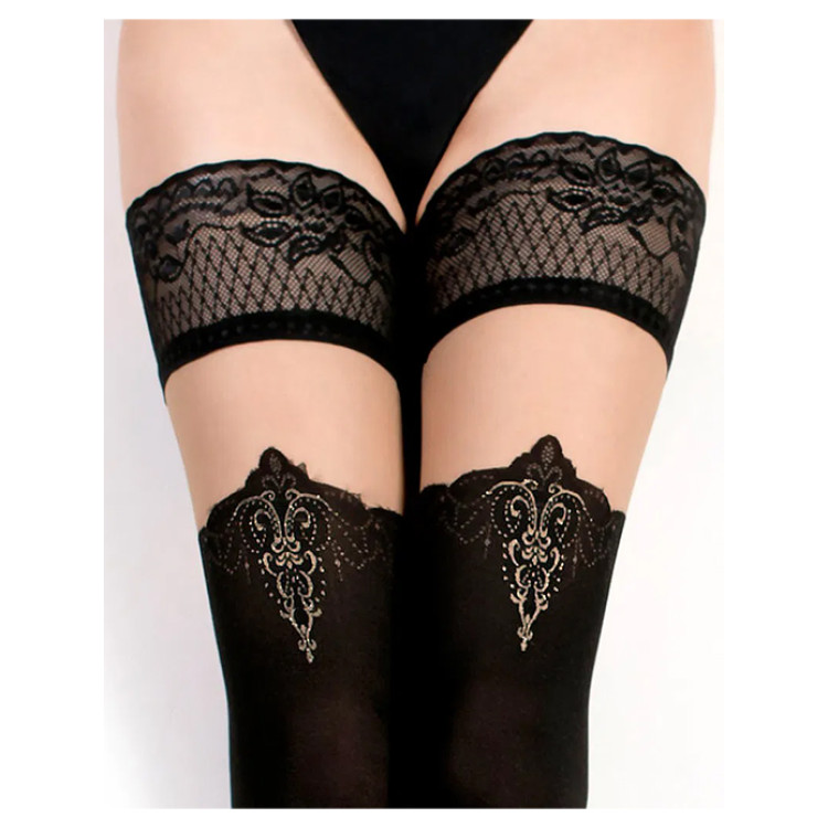 Sorte strømper med sexy design og blondekant med hold up funksjon.