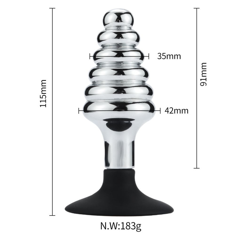 Buttplug i metall med pirrende design. Denne pluggen har en frekk, rillete form som vil stimulere deg ved hvert eneste støt.