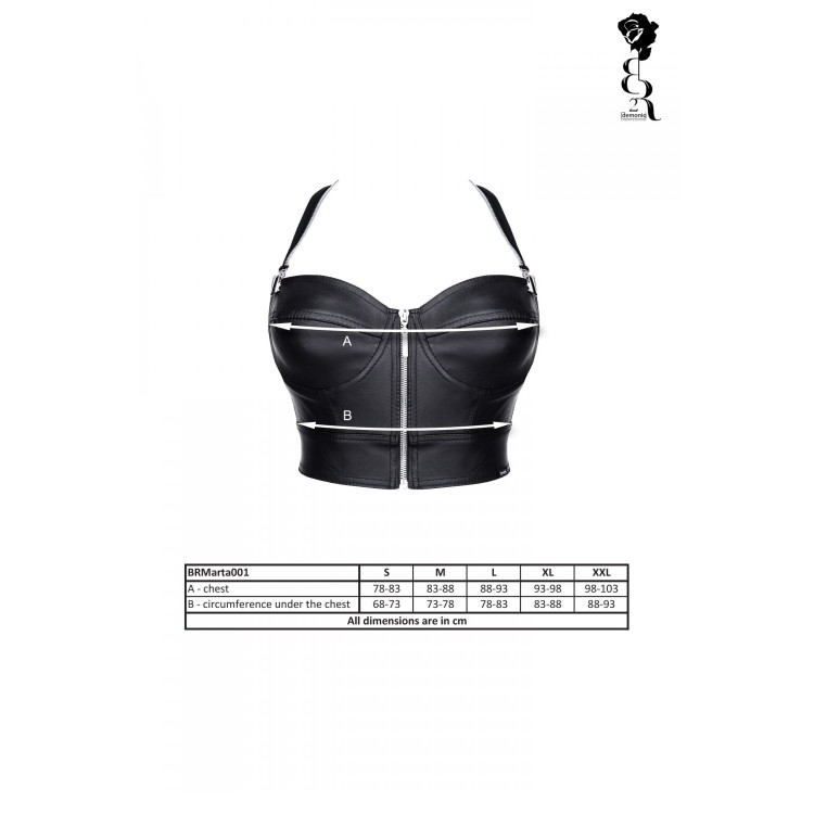 Toppen er laget i svart, elastisk øko-skinn materiale med teksturen til ekte skinn.