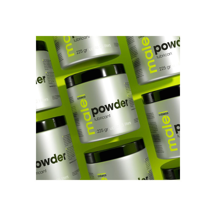 MALE Cobeco Pulverglidemiddel er et unikt konsentrert pulver som forvandles til en sensasjonell intim massasjegel etter å ha blitt blandet med vann.