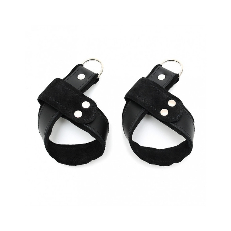 Suspensjoncuffs i lær som passer perfekt til å henge din partner opp i andreaskors, kjetting eller andre feste metoder du måtte like.