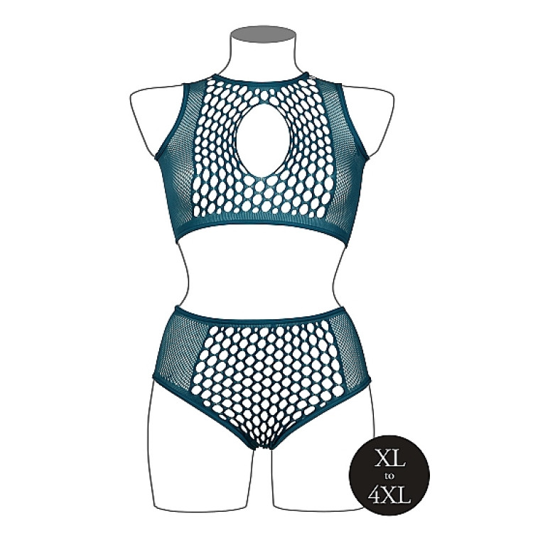 Le Desir - Key-Hole Fishnet Undertøysett - 2XL-4XL - Blå