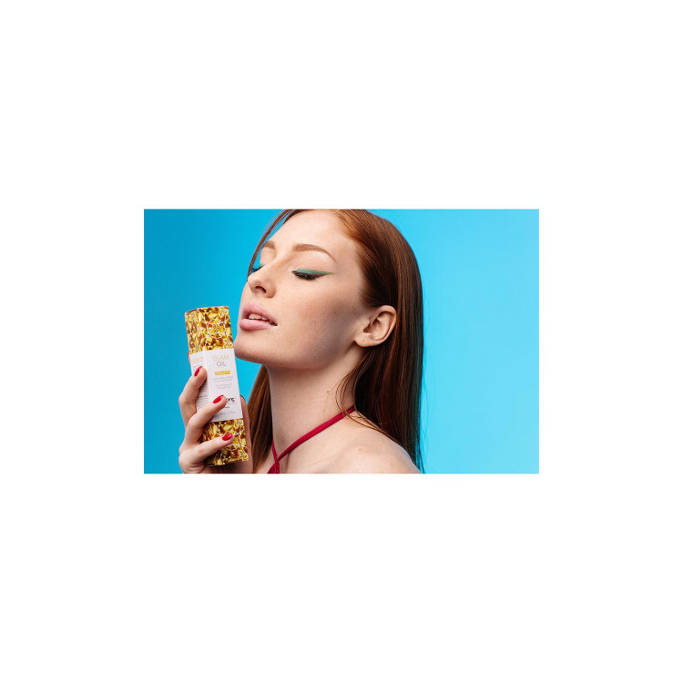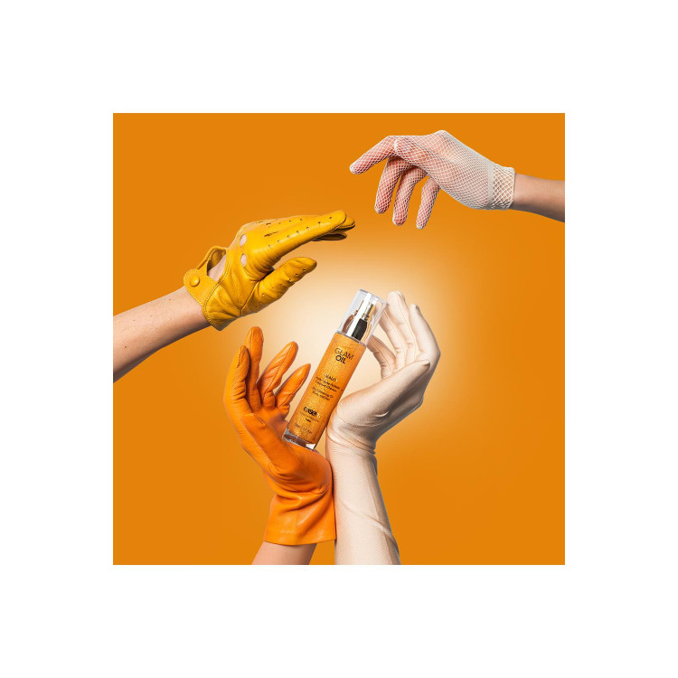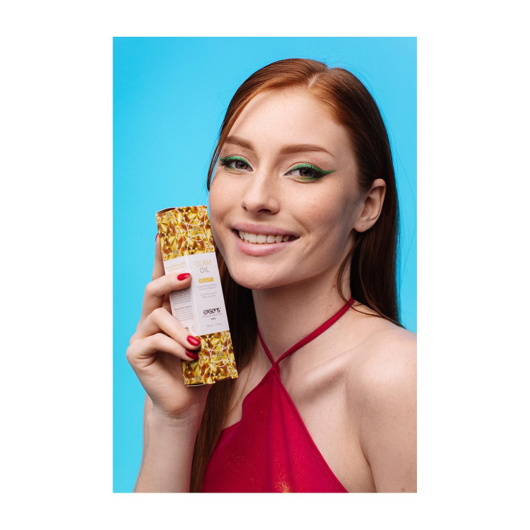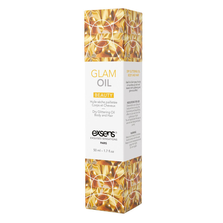 Tre inn i rampelyset med Glam Oljen fra Exsens! Denne tørre kroppsoljen tilfører en skimrende glans til både huden og håret. Gi huden din en myk, gylden glød som varer hele natten!