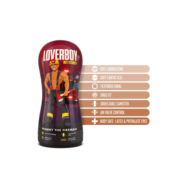 Oppdag Manny the Fireman fra Loverboy! Denne deilige masturbatoren vil gi deg en fantastisk onaniopplevelse med The Firemans selvsmørende teknologi. Bruk bare litt vann og kjenn hvor smørende myk masturbatoren blir!