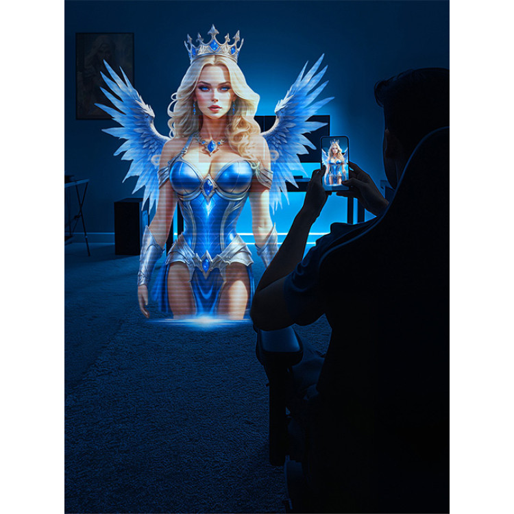 Når du skanner QR kodene som følger med i esken, åpnes den gyldne porten til Eloa sitt himmelske rike. Gjennom augmented reality kan hun tre frem i rommet ditt, strålende og nær, med et blikk som lover ro og lek i samme åndedrag. Eller du kan velge en sensuell film som tar deg med til Aurielle, et rike av gyllent lys, myke skyer og skjulte himmelske rom der nytelsen får blomstre i fred. AR og video gjør Eloa til mer enn en fantasi, hun blir et øyeblikk av ren eskapisme.