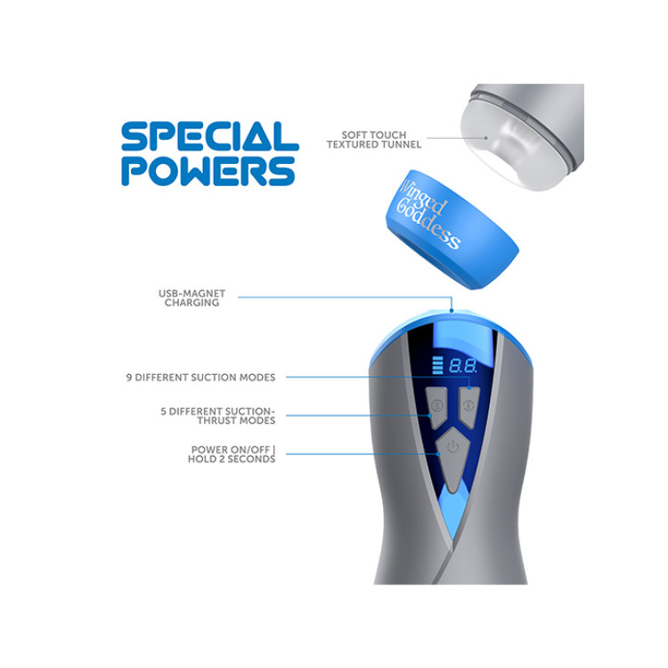 Hun stiger ned fra skyene med vinger som inviterer tile noe større, noe nesten hellig. Masturs Eloa Winged Goddess er en sanselig og leken opplevelse der nytelse føles like fri som skyene hun svever blant. Hun inviterer deg inn i et lyst og forlokkende univers der begjær ikke er forbudt, bare guddommelig. Eloa er myk, åpen og uimotståelig, med en energi som handler mer om hengivelse enn kontroll.