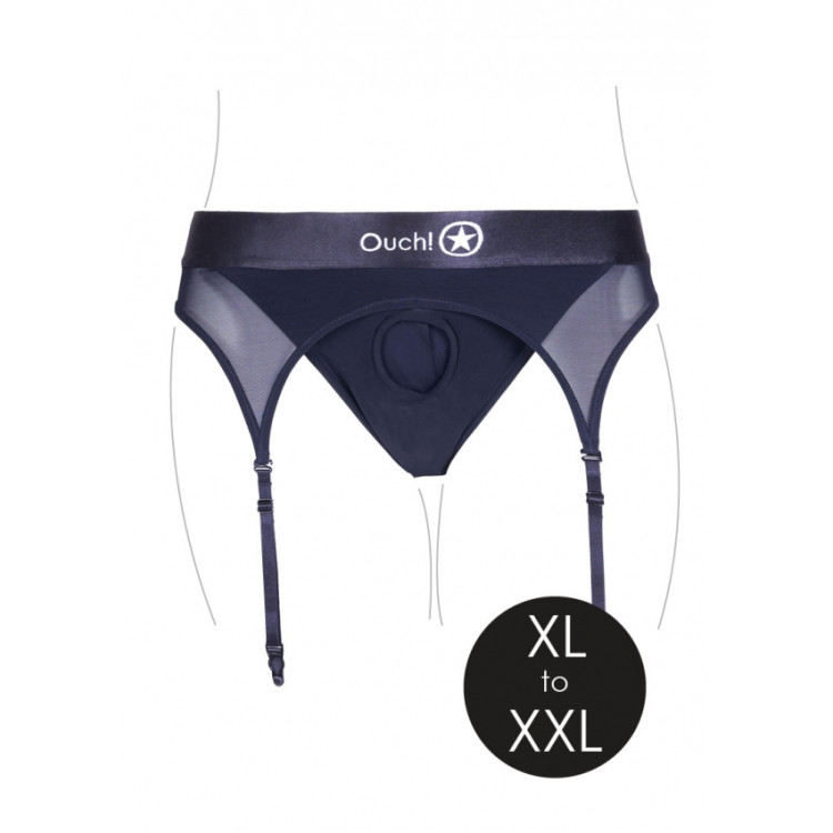 Ouch! Vibrating Strap-on Thong med Strømpebånd - XL/XXL