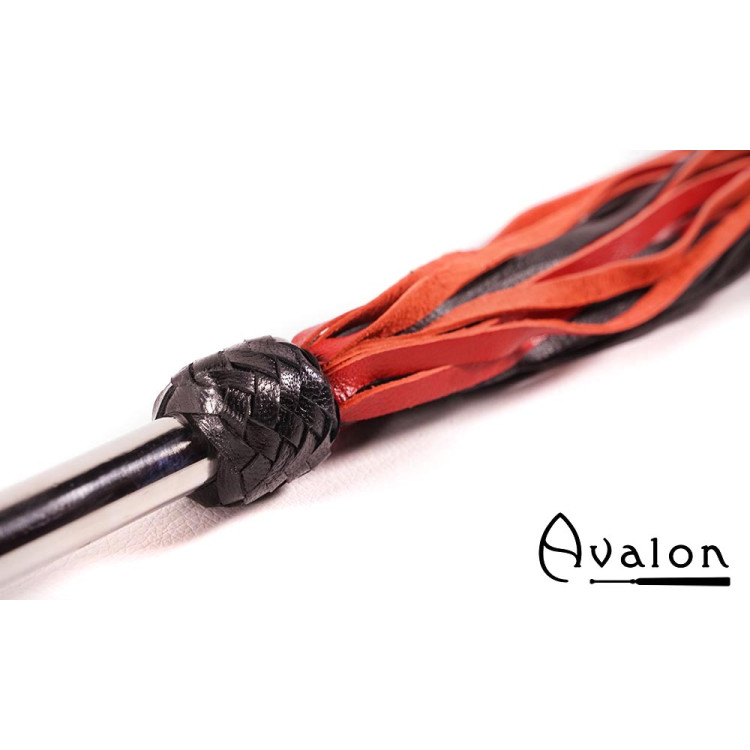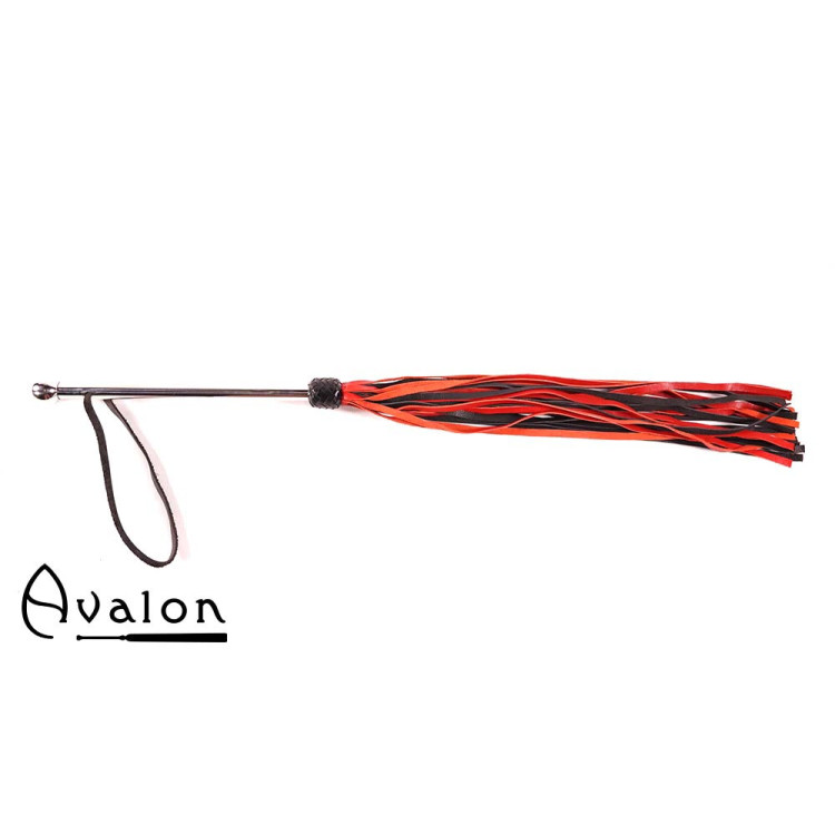Avalon - SORCERESS - Sort og rød flogger med langt metall håndtak