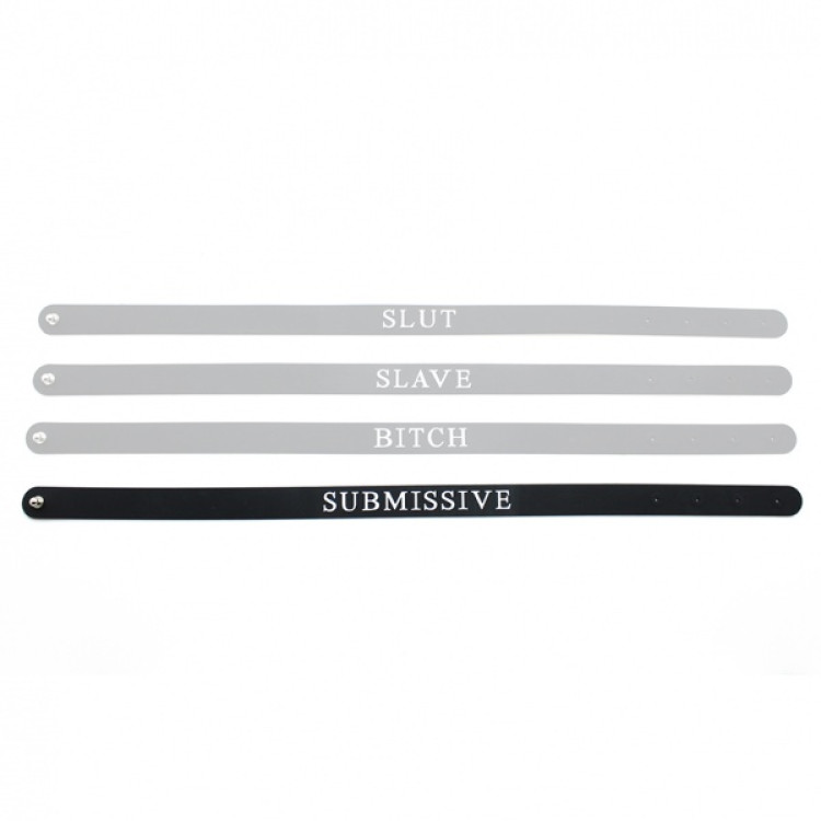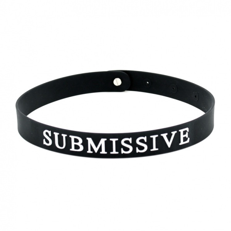 Collar i silikon med teksten Submissive uthevet i hvit skrift.
