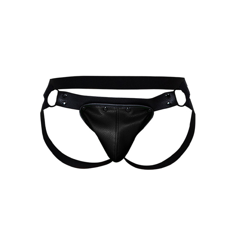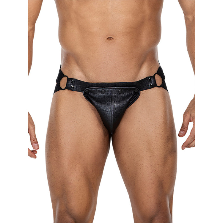 Jockstrappen er laget av en eksklusiv blanding av 60% vegansk skinn og 40% nylon som gjør den både pustende og slitesterk. Fronten er avtagbar og lar din partner komme til godsakene uten store hinder. Matte, sorte knapper og O-ringer setter prikken over i-en på et stilfullt design. Bruk den som den er eller under klærne - Jockstrap C4M er perfekt til både fest og hverdag!