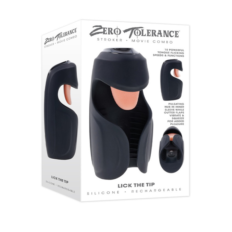 Et tungeflikk er ofte nok til å sende deg rett over kanten av ekstase - og det får du nettopp med Lick The Tip fra Zero Tolerance! Med denne trippelfunksjon masturbatoren kan du oppleve den tungeflikkende følelsen mens du glir helt inn i en myk, vibrerende og pulserende kanal som fører deg rett til orgasme!