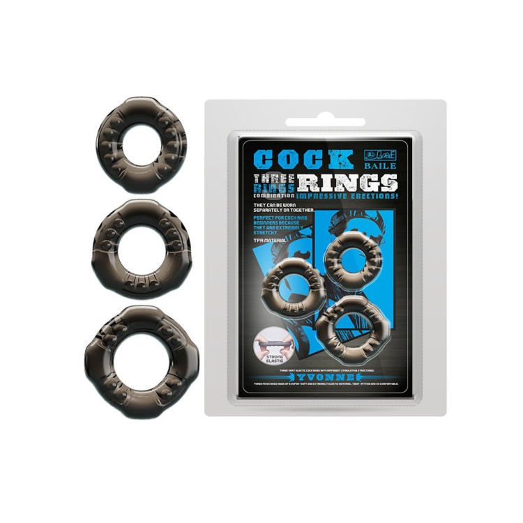 3 pk med enkle penisringer i 3 størrelser slik at du kan bruke ringene rundt både penis..