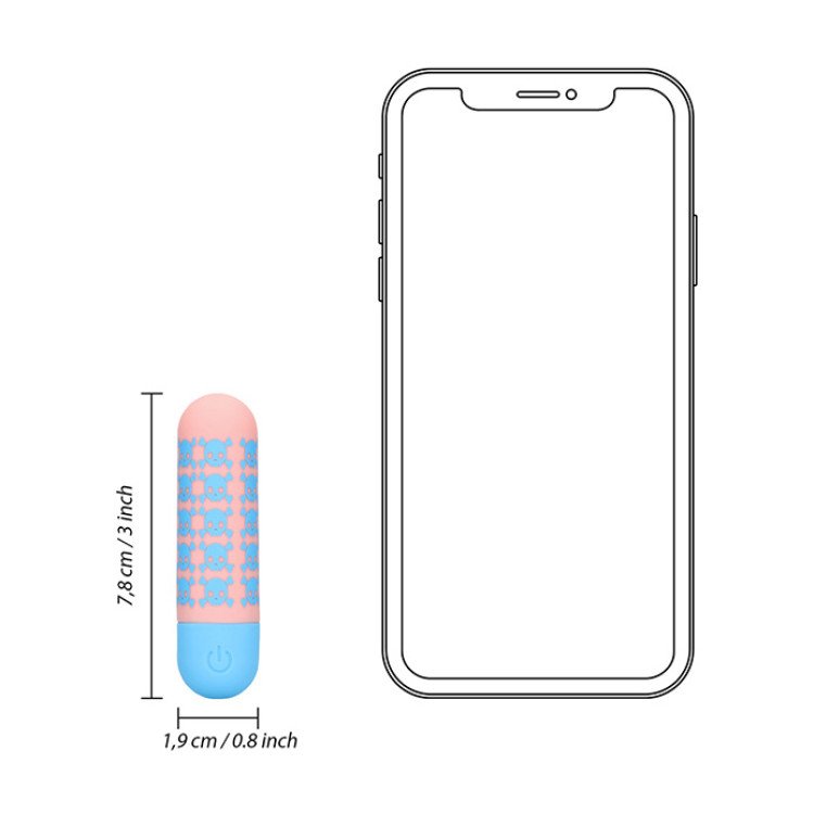 Bulleten er laget av ABS med en myk finish og et stilig design. Bulleten har en brukervennlig enkel knapp for å skru den på/av, og kontrollere de 10 forskjellige vibrasjonsprogrammene. Velg mellom rene intensiteter og fengende rytmeprogrammer!
