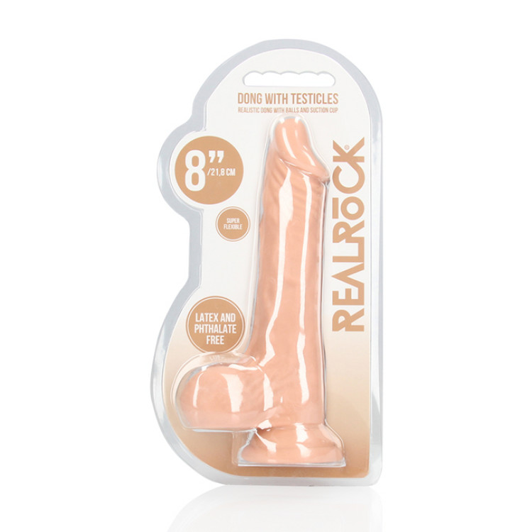 Realrock - Dildo med pung - 8inch/21,8 cm - Lys hudfarge