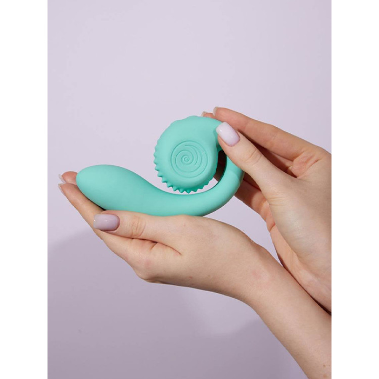 Gizi er en liten revolusjon i seg selv. Den ser kanskje ikke ut som en klassisk rabbitvibrator, men du kan være trygg på at den gjør jobben og litt til. Med sin unike Snailvibe-design følger den kroppens naturlige kurver og gir dobbel stimulering uten at du trenger å justere eller holde igjen. Den rullende klitorisdelen beveger seg i takt med kroppen din og holder konstant kontakt, slik at du får rytme og flyt som føles helt naturlig.