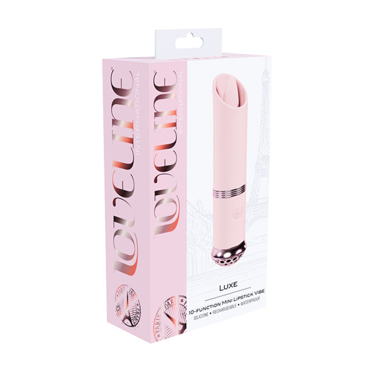 Stilren, diskret og designet for målrettet nytelse. Loveline Luxe er en mini vibrator forkledd som en leppestift, noe som gjør den perfekt for deg som ønsker sensuell luksus på reise. Den unike tungen på tuppen gir presis stimulering av klitoris og andre sensitive soner, og lyset i basen skifter farge for hver av de 10 vibrasjonsfunksjonene, slik at du enkelt ser hvilken rytme du nyter.