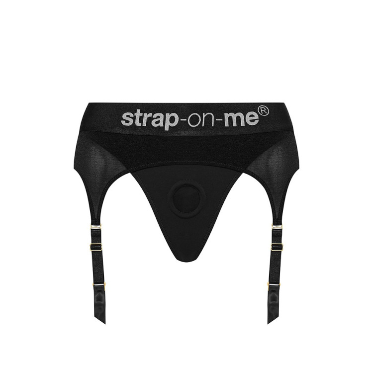 Rebel Harness minner om en hofteholder med truse, som har et bredt midjebånd for bedre komfort og to justerbare stropper på hvert lår som festes til strømper.