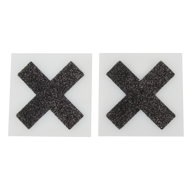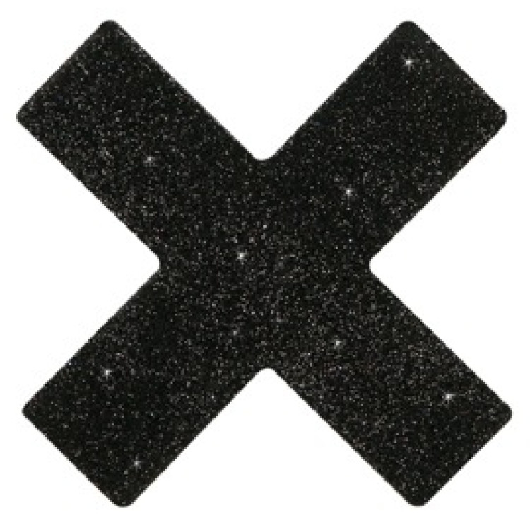Glitrende X-kryss for brystvorter. Festes enkelt med klebrig lag.