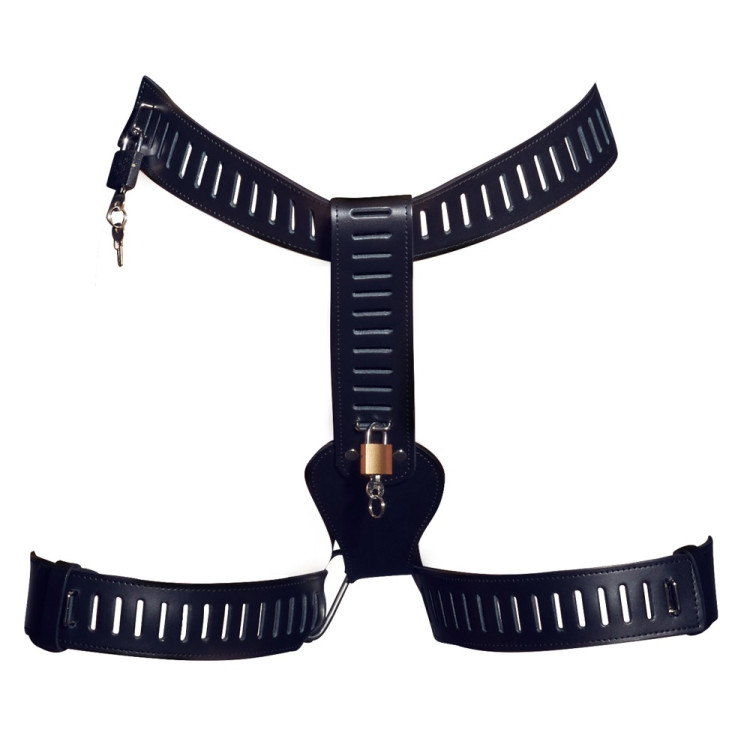 Pirrende kyskhetstruse med justerbar passform og fem hengelåser.